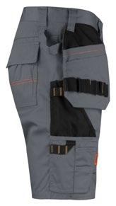 Shorts i 4-vägs stretch med partier av slitstarkt vävt tyg i benfickor och hölsterfickor. Avtagbara hölsterfickor med zip-in funktion och med extrafack och förstärkt insida, kan stoppas ned i framfickorna. Stretchigt midjeband. Stolpfickor bak. Hammarhank. Tumstocksficka med knivhållare. Benficka med täckt blixtlås, ID-kortsfack och telefonfack.