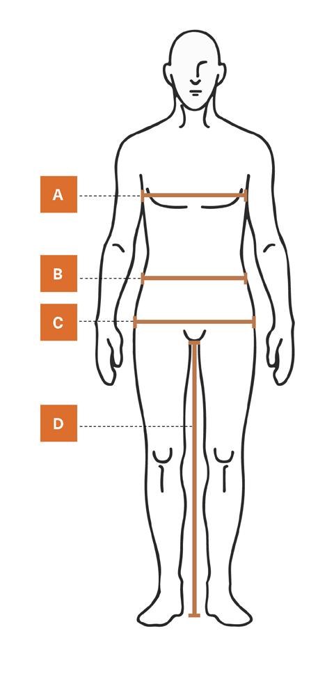Har du inte möjlighet att prova plaggen i butik kan du mäta dina kroppsmått för att avgöra rätt storlek. I detta fall, ta måtten i kroppsnära underkläder, utan att måttbandet skär in. Se sedan storlekstabellen på nästa sida.