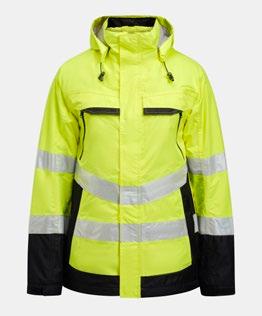 Quiltfodrad servicejacka i lättskött polyester/bomull. Två bröstfickor med kardborrestängning, D-ring i vänster bröstficka för ID-kort. Borstad mjuk polyester i kragen. Framfickor med blixtlås. Två innerfickor, en stor för dokument och en för mobiltelefonen. Reglerbart ärmslut och nederkant. Reflexer framtill på ficklock. Förlängd i rygg med reflexpasspoal.