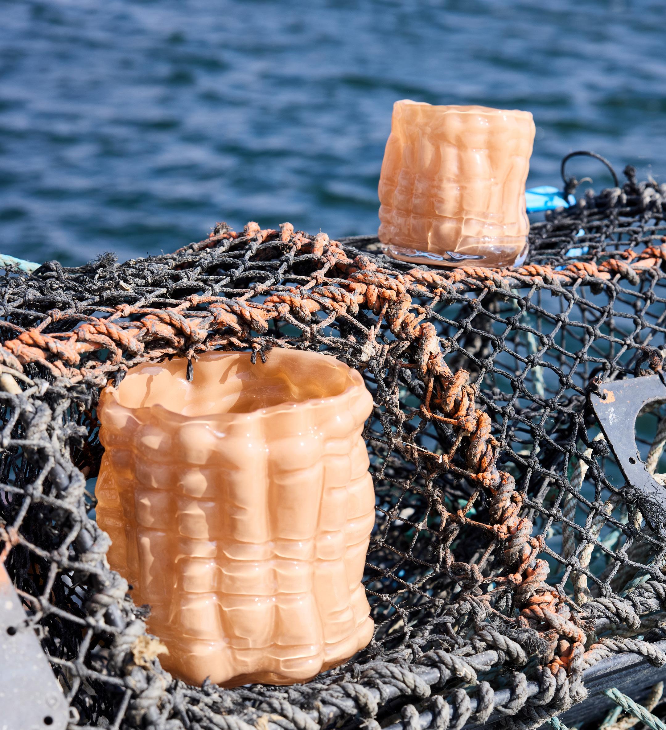 Den munnblåste lyslykten Laranne fra BYON har en mykt riflet struktur som gir både karakter og harmoni. Finnes flere farger og størrelser – her den nye fargen Peach.