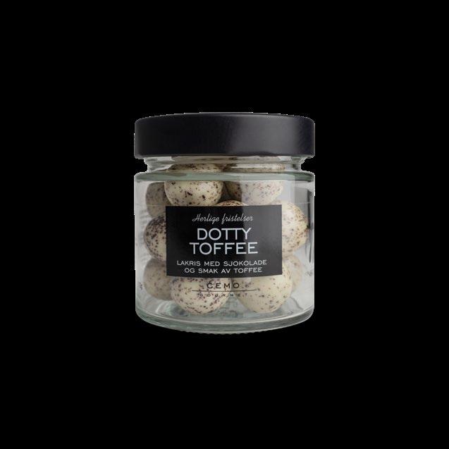 Tre gode smaker. Tirami amore sprø mandler dekket med sjokolade og en mild smak av tiramisu. Sjokolademandler, drasjerte mandler med sjokolade. Dotty toffee, sjokoladelakris med en rik og rund smak av toffee.