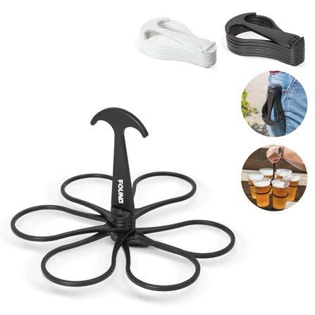 Bær seks kopper om gangen. Koppholder laget av polypropylen som er resirkulerbar, holdbar og gjenbrukbar. Liten nok til å bli stuet bort i vesken. Den kan evt. også festes utenpå vesken, i lommen eller i beltet.