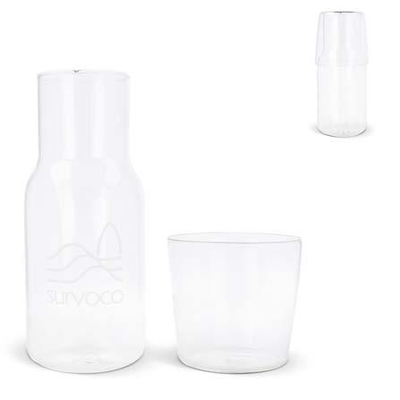Drikk med stil med vårt sett med karaffel og drikkeglass. Karaffelen på 550 ml og glasset på 250 ml definerer eleganse. Perfekt ved siden av sengen eller på skrivebordet når du jobber.