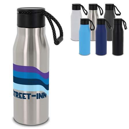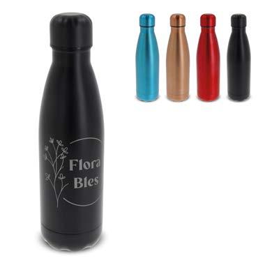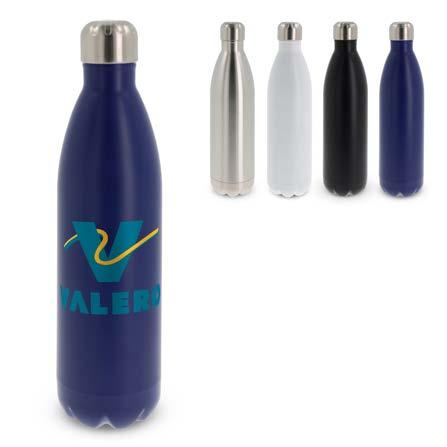 Dobbeltvegget vakuumisolert drikkeflaske. Den 100 % lekkasjesikre flasken er pakket i en gaveeske. Flasken holder drikken ved riktig temperatur lenger på grunn av vakuumet mellom veggene. Drikken holder seg varm opptil 12 timer og/eller kald i opptil 24 timer. Flasken har en et pulverbelegg som gir en førsteklasses overflate.