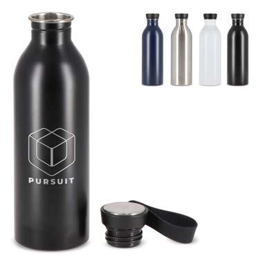 Vannflaske av rustfritt stål. Den 100 % lekkasjesikre flasken er pakket i en gaveeske. Flasken inneholder et pulverbelegg som gir en førsteklasses overflate. Passer til kalde, ikke-kullsyreholdige drikker.