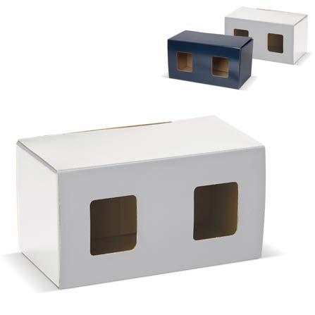 Blå gaveeske med vindu. Passer til to krus. Mål: 110 x 210 x 105 mm