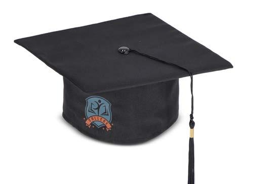 Feir prestasjonene dine med stil med denne klassiske eksamenshatten, designet med en sikker og komfortabel passform. Den flate, strukturerte toppen er perfekt for det ikoniske eksamenskastet. Med sidesømmer og plass til personlige trykk på forsiden, er den et iøynefallende tilbehør til seremonien.