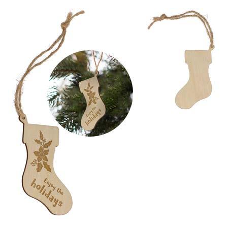 Feir høytiden med denne sjarmerende, strømpeformede julepynten laget av tre. Den klassiske formen og den store plassen til branding gjør den perfekt for personalisering, for å skape et unikt minne om høytiden og for å gi bort i gave. Ideell til å dekorere juletrær, kranser eller festlige utstillinger.