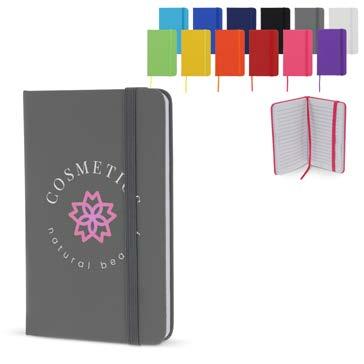Notatblokk i A5 størrelse, med elastisk strikk og 160 kremfargede, linjerte ark. 70g/m² papir.