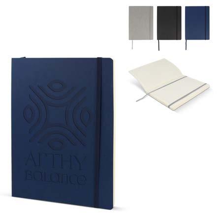 Vi presenterer Maxi Soft Cover Notebook, en perfekt blanding av eleganse og funksjonalitet. Med de luksuriøse, kremfargede linjede sidene blir det en fornøyelse å skrive. Det innebygde båndet sørger for at du aldri mister oversikten, mens strikkbåndet holder tankene dine på plass.