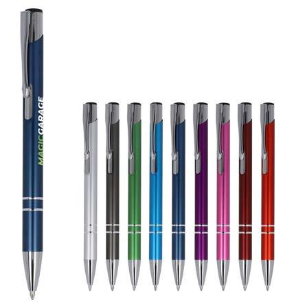 Kulepenn av aluminium med tre ringer av krom. Kulepennen er pakket i et matchende etui. Fin forretningsgave.