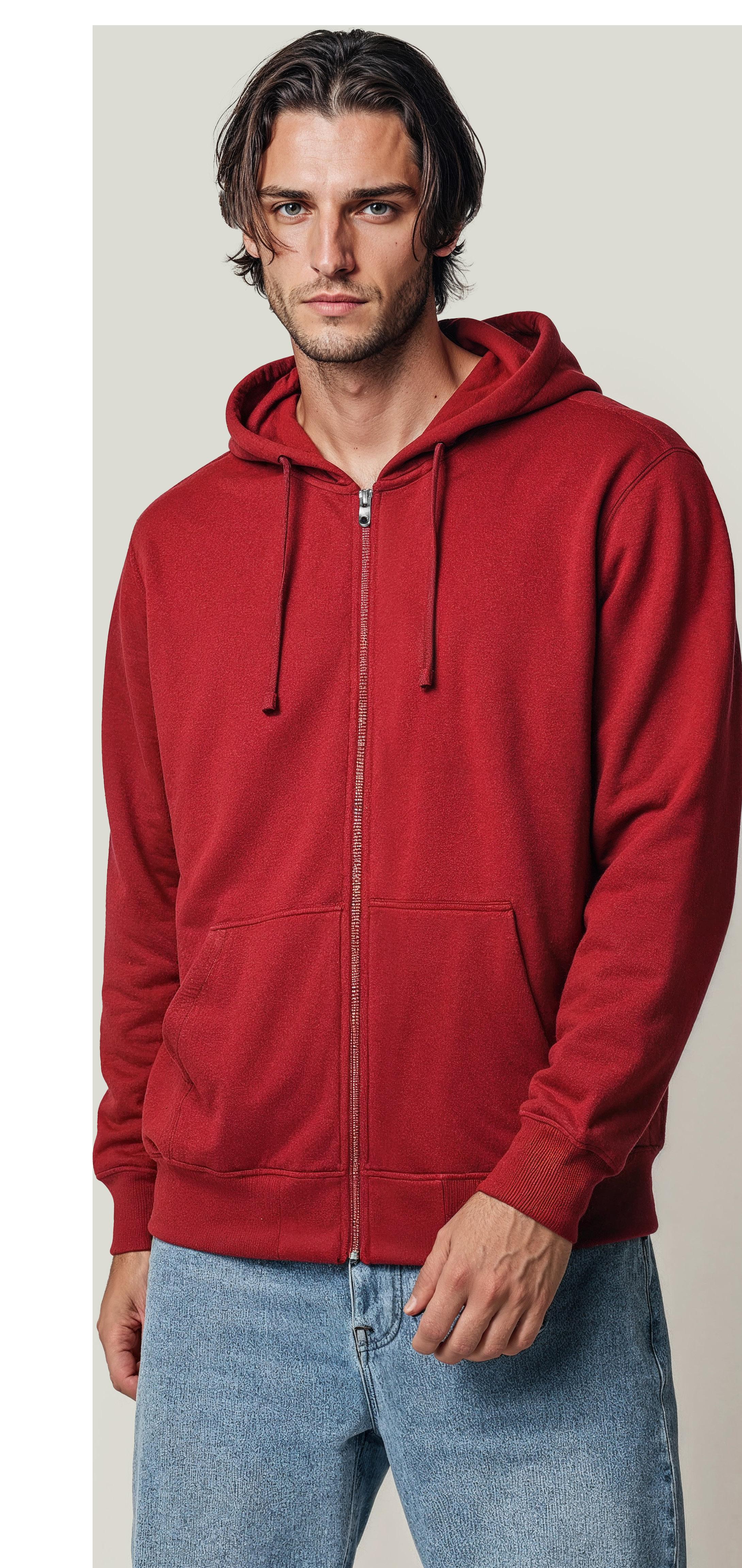 This unisex full-zip hoodie is crafted from a blend of 80% organic cotton and 20% recycled polyester, offering a soft, comfortable fit with a 350 g/m² fabric weight. Featuring an adjustable drawstring hood, ribbed 2x1 cuffs and bottom hem. The hoodie is enzyme-washed for a smooth, worn-in feel.