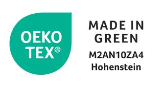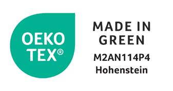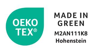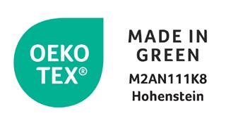 OEKO-TEX® MADE IN GREEN ensures that every product is safe for your health and produced with respect for people and the environment. It combines the strict requirements of OEKO-TEX® STANDARD 100 (certified to be free from harmful substances) and OEKO-TEX® STeP (sustainable and responsible production facilities), giving you full confidence that you are choosing an honest and safe product.