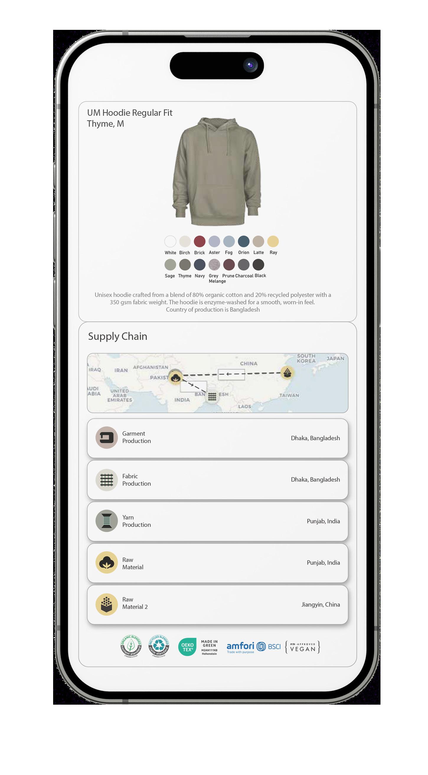 That’s why we use only certified organic and recycled materials, hold OEKO-TEX® MADE IN GREEN certifications, and provide each item with a digital product ID for full transparency.