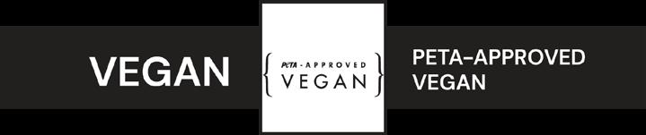 PETA-Approved Vegan (no animal materials, no testing).