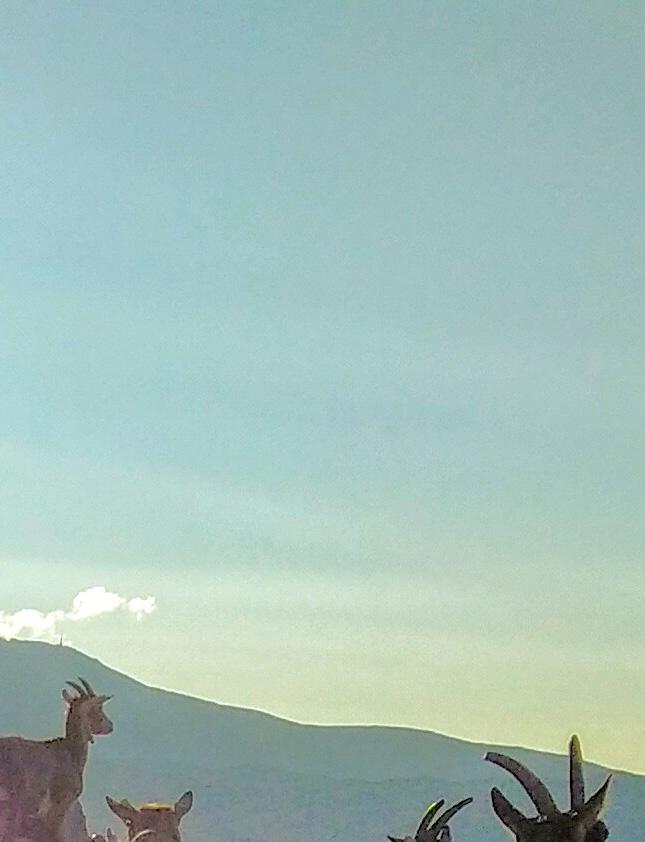 Nå beiter geiter og kyr i området rundt staulen. Me har også nokre grisar som kosar seg ute heile sommaren.