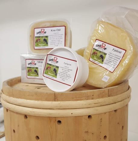 Produkta selgas i gardsbutikken på setra.