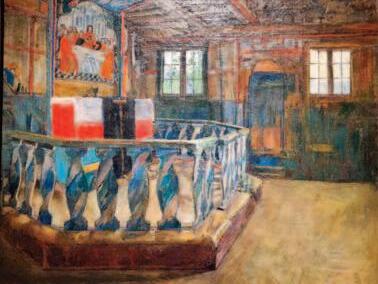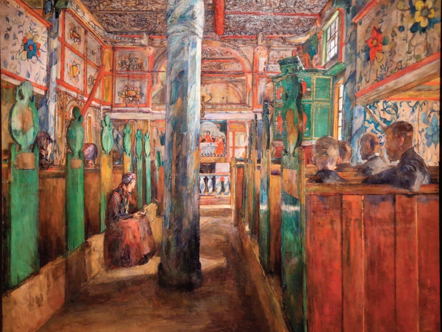 Forsiden: Harriet Backers maleri “Interiør fra Uvdal stavkirke”. Foto: Audun Opland.