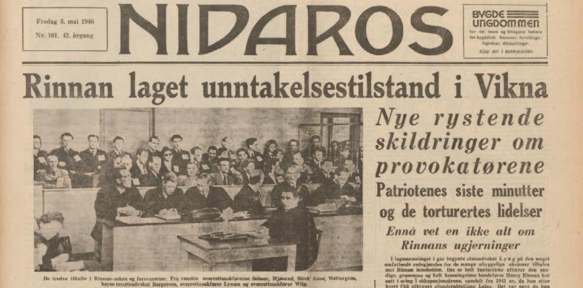 Faksimile fra avisa Nidaros, 3. mai 1946. Kilde: www.nb.no