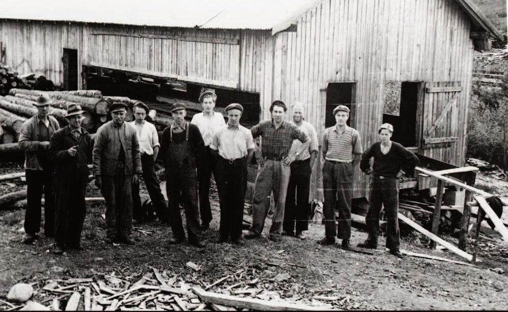 Veggli sag på 1950talet. Arbeidsstokken her er frå venstre: Torstein Strysse, Helge Haukjem, sagmester Stabekk, Erling Nilsen, Erik T Haugen, Olaf Helgesplass?, Torstein G Toeneiet, Reiar O Tveiten, Knut Kallerud?, Kittil Svendsrud, Tore K Bogstrand.