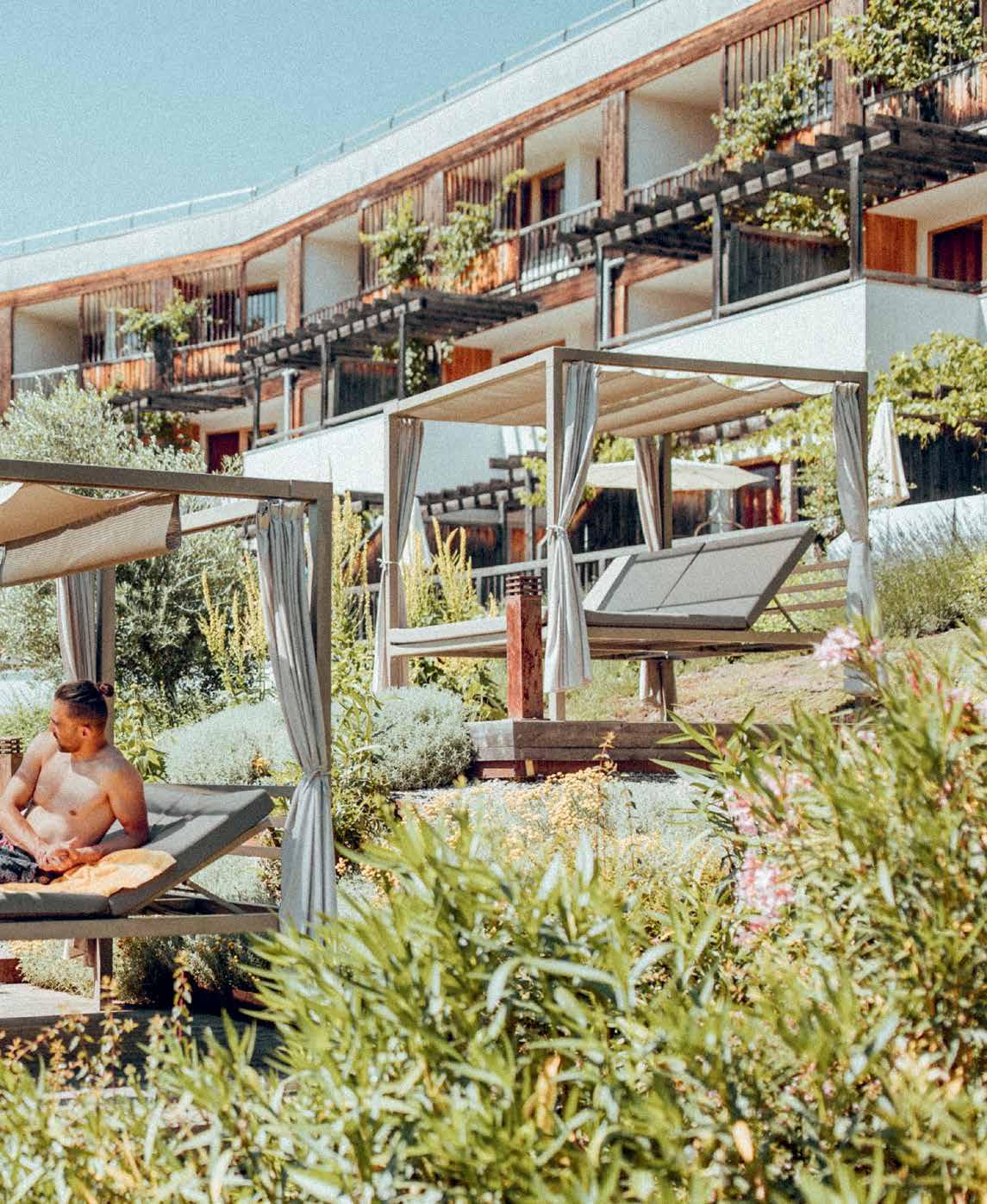 Sie erwachen morgens wunderbar erholt und ausgeruht vom wohligen Schlaf in Ihrem Zirbenholz-Zimmer und Ihr Blick wandert nach draußen. Ob sich der Himmel über Gargazon nun strahlend blau oder mystisch grau wölbt, im Garten der Sinne in theiner‘s garten finden Sie mit Sicherheit Ihr perfektes Plätzchen zum Erholen. Urlaub in theiner’s garten verspricht nicht nur ganz viel süßes Nichtstun, sondern genauso wartet auch ein spannendes Aktivprogramm auf Sie. Von geführten Wanderungen mit Wanderführerin, Aquagymnastik, Workouts, Yoga, Meditationen bis hin zu gemütlichen Winzerabenden ist alles dabei.