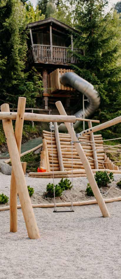 Eine Wasserwerkstatt mit Fontänen, Wasserfällen und Spritzpistolen, eine Rutsche mit Zeitmessung für Rekordhalter, Dschungel-Feeling dank Grünpflanzen und Rocky, der alles im Blick behält: Für die kleinsten Gäste gibt es im Forsthofgut jede Menge WasserErlebnis. Neben dem Babybecken mit 25 Zentimeter Tiefe und kleiner Bärenrutsche wartet im Family SPA ein Kleinkindbecken mit 31 Grad warmem Wasser. Absoluter Lieblingsplatz für kleine Badenixen ist die Wasserwerkstatt, in der sich auch die Bewohner des Waldes gerne verstecken. Und in der Röhrenrutsche sausen auch Mama und Papa um die Wette!