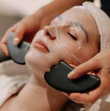 wird die Stirn bearbeitet: Den Gua Sha Stein in der