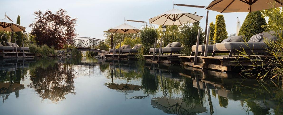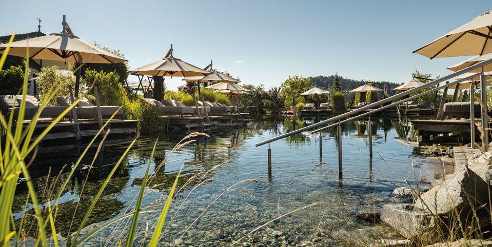 • 750 m² großer Naturbadesee mit Wasserfall