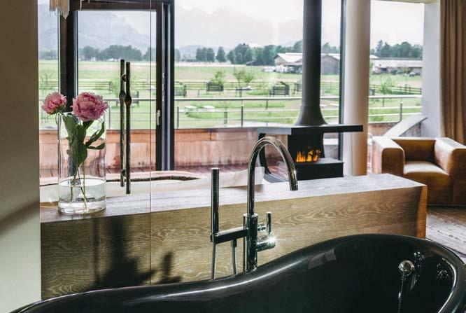 Panorama-Whirlpool, Panoramasauna, Badewanne, Kaminfeuer und Südlage mit Bergblick, inklusive Tiefgaragenstellplatz