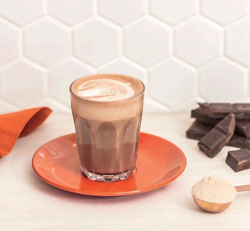 Texture MILKLAB® Almond, protein powder and Simara Blends Dutch Cocoa powder in a jug and serve