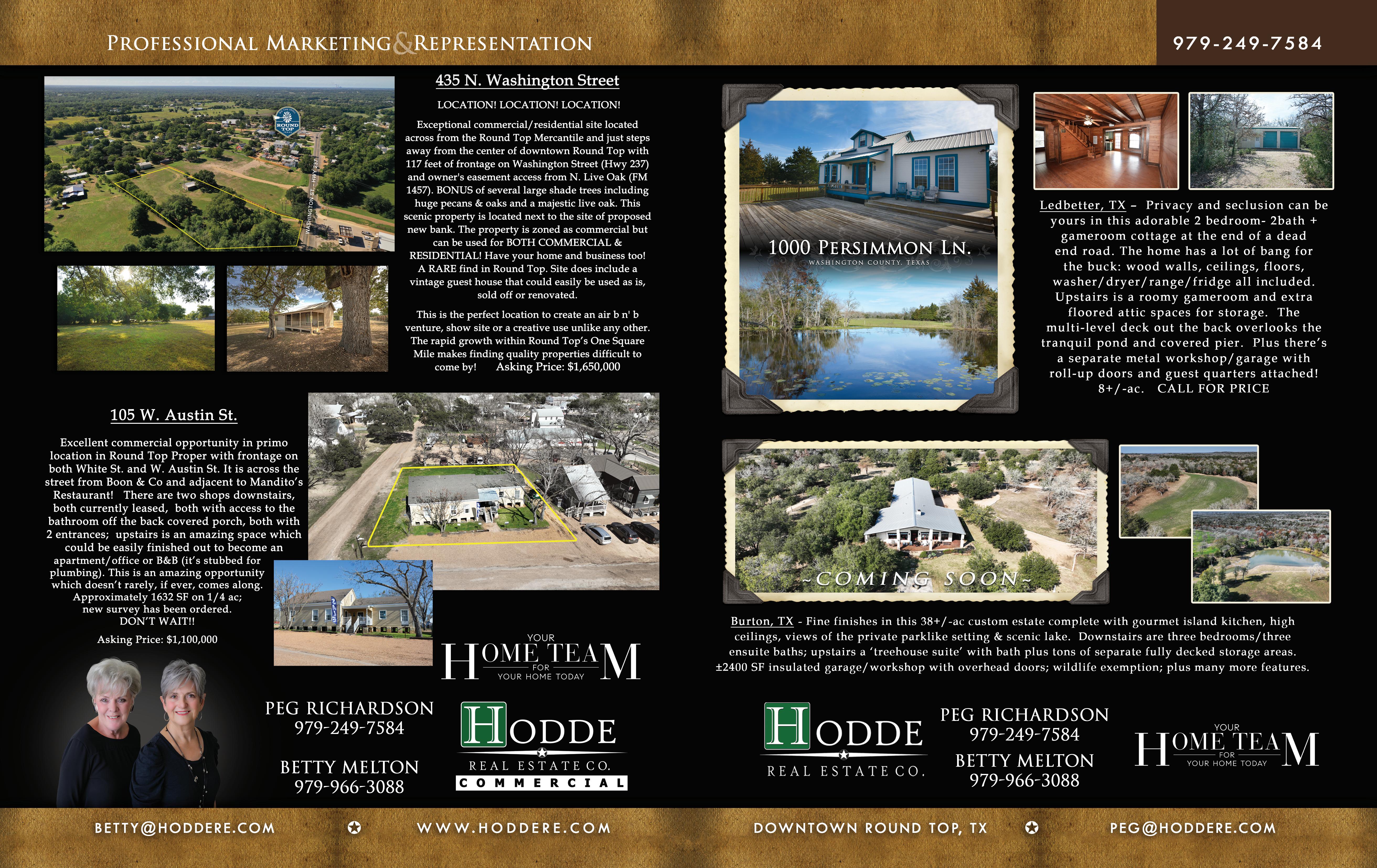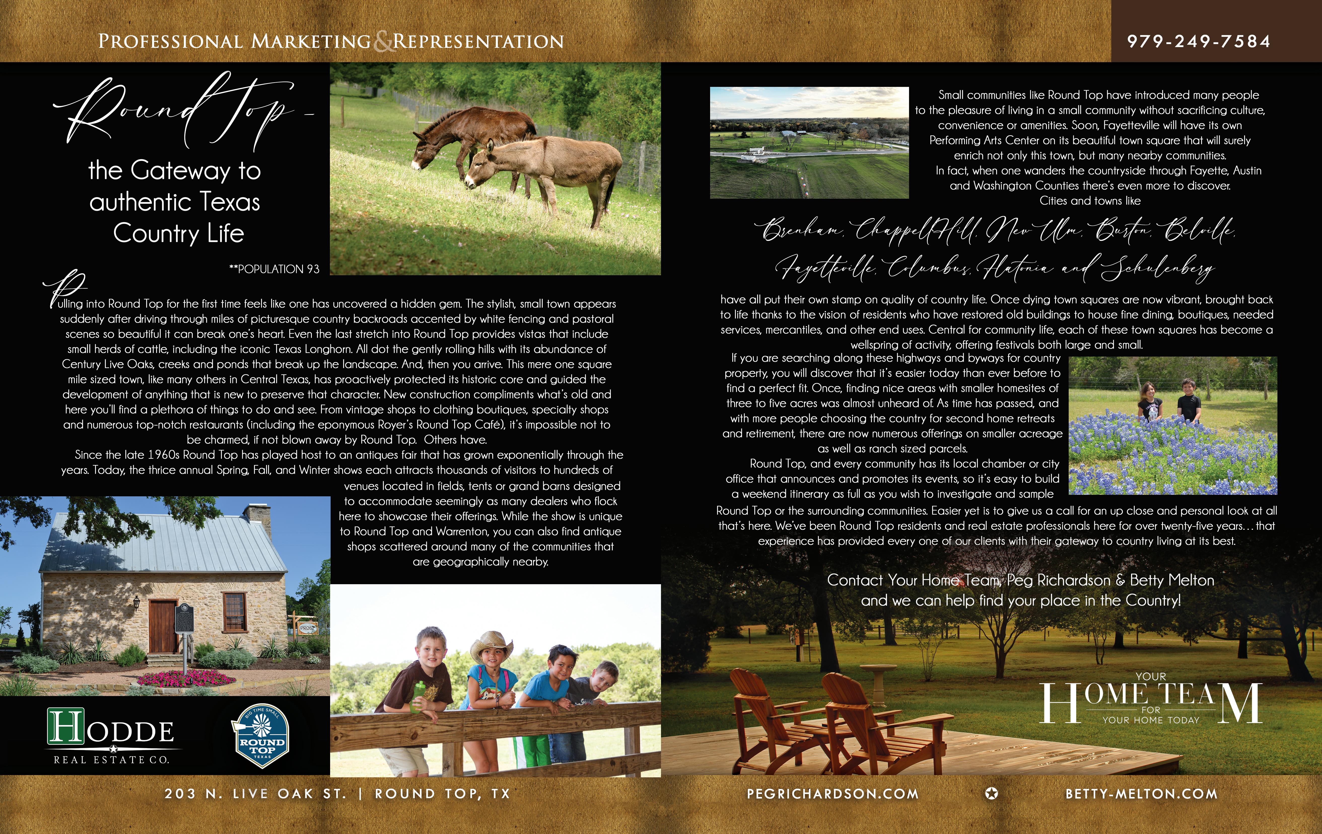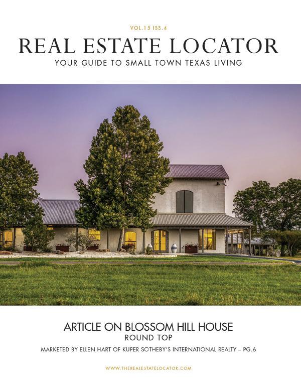 YOUR GUIDE TO SMALL TOWN TEXAS LIVING VOL.16 ISS.1 ROUND TOP –GATEWAY TO THE COUNTRY… ARTICLE BY YOUR HOME TEAM – HODDE REAL ESTATE – PG.24 WWW.THEREALESTATELOCATOR.COM REAL ESTATE LOCATOR