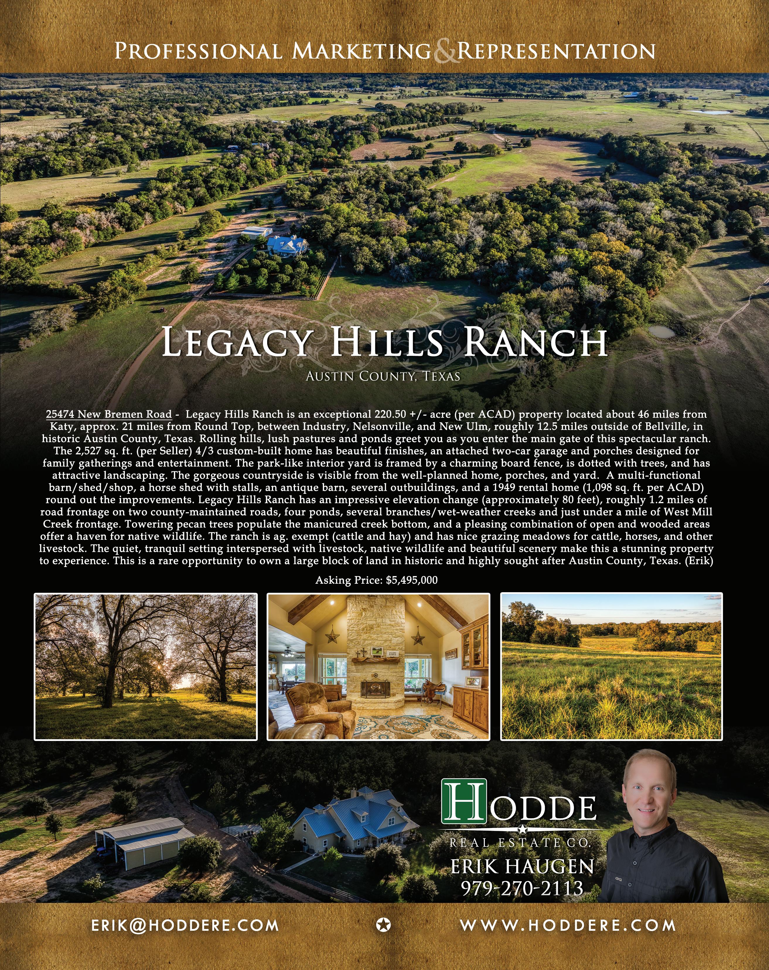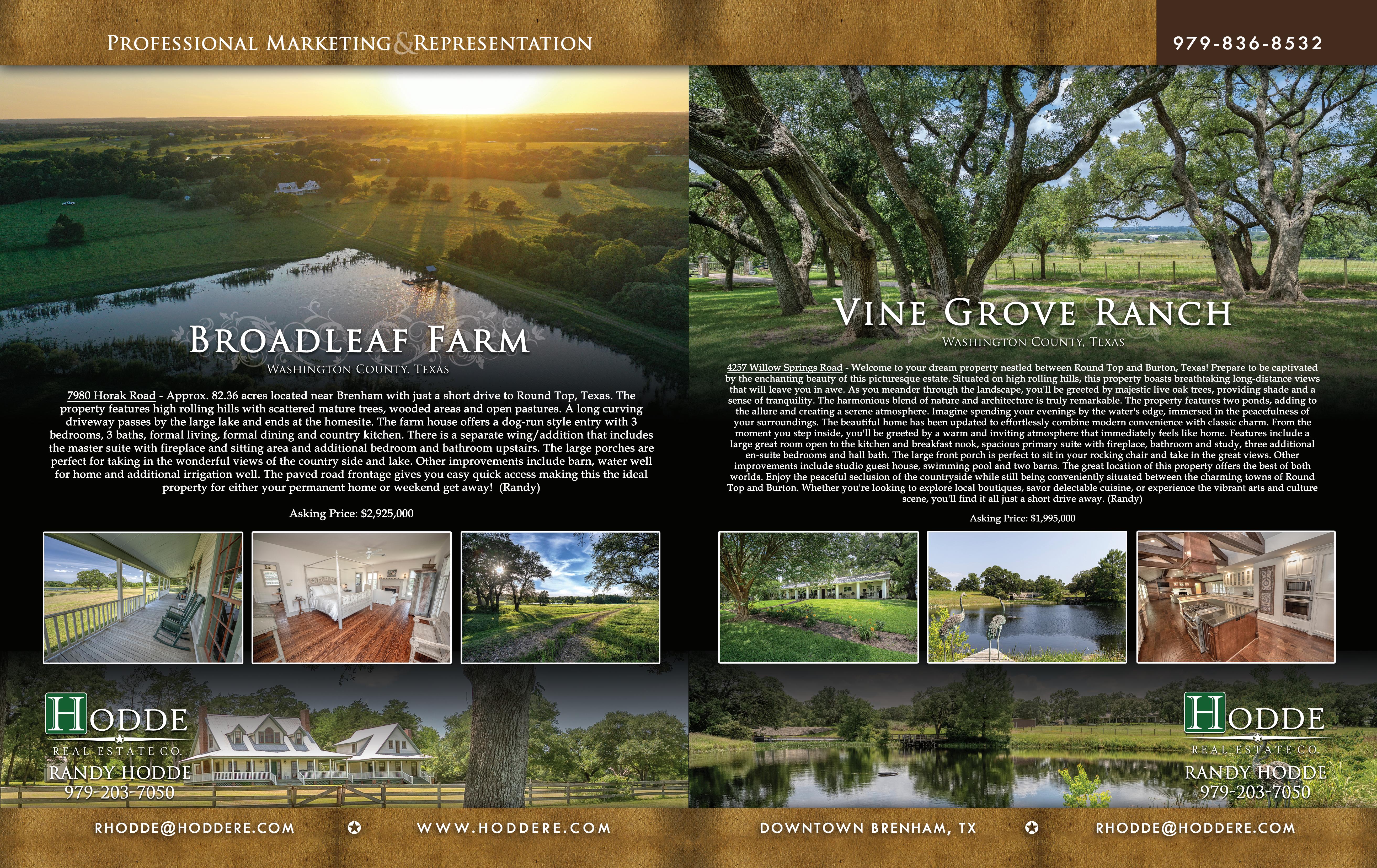 ADVERTISING INFO: 979-249-7584 PEG@CVCTX.COM 101 Main St, Round Top, TX 78954 103 N Main St, La Grange, TX 78945 3541 Hwy 159 | LA GRANGE 24+ Acres | 6000+ SF Home | Pool | Huge Live Oaks | 3 Barns | Potential Retail Site with County Water 3 Phase Power | Limitless Possibilities! |5 Minutes from Square in La Grange | TXLS.com #145463 | $1,995,000 FRANK HILLBOLT REALTOR® 979.249.6402 BEN KASTLEMAN REALTOR® 713.907.6906