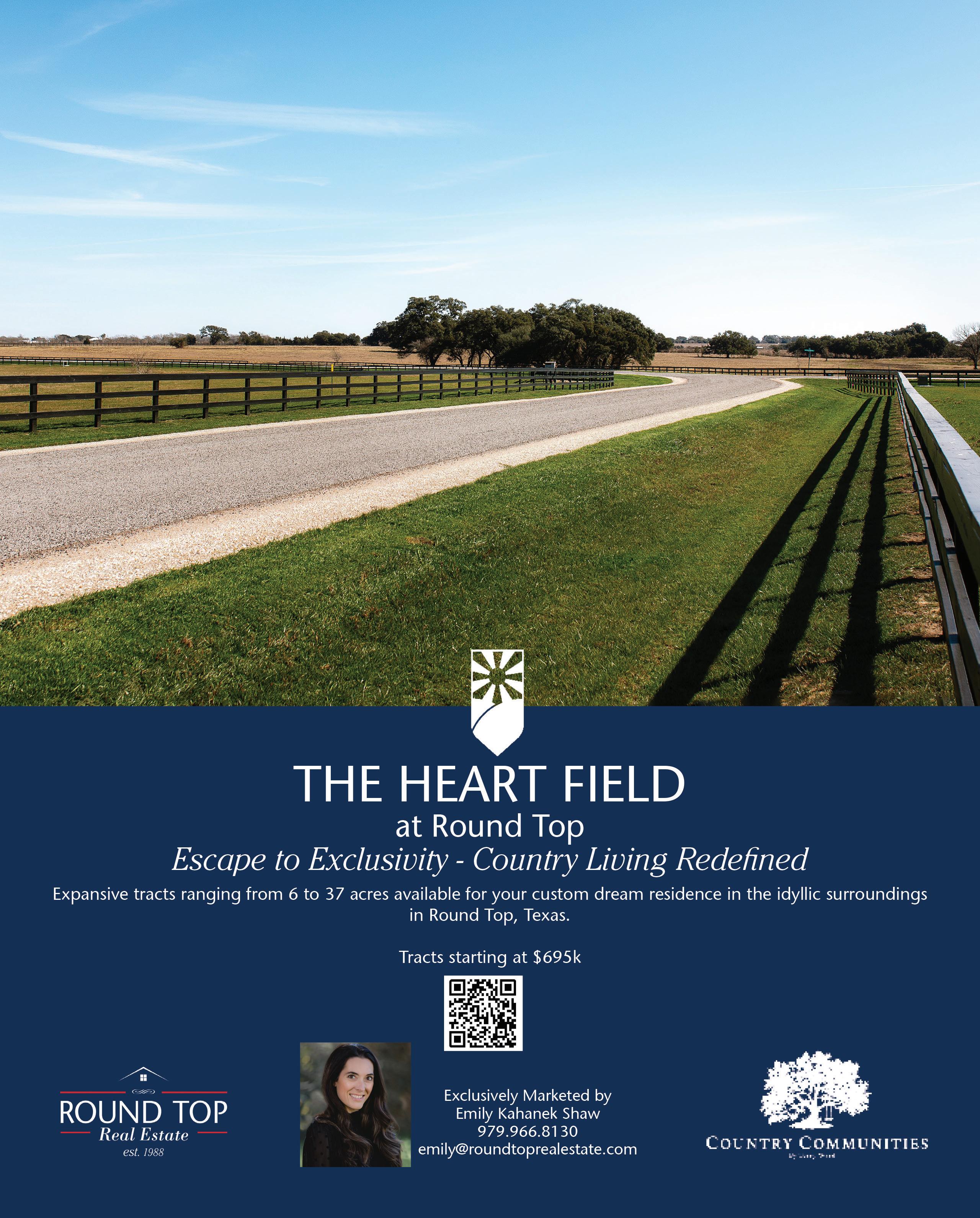 60 WWW.THEREALESTATELOCATOR.COM ADVERTISING INFO: 979-249-7584 PEG@CVCTX.COM EMILY KAHANEK SHAW Realtor Associate 979-966-8130 emily@roundtoprealestate.com 101 Main St, Round Top, TX 78954 | 979-249-5732 | 103 N Main St, La Grange, TX 7894 5 www.roundtoprealestate.com 1319 FM 954 | ROUND TOP 4/2.1 Home | 2,060 SqFt | 12.436 Acres TXLS: 144581 | $1,499,999 3817 O’Quinn Branch Road | LA GRANGE 3/2.5 Home | 2,430 SqFt | 82.68 Acres TXLS: 143790 | $2,850,000 Woodland Meadows | ROUND TOP AREA Wooded Homesites Ranging from 2 – 6.3 Acres Starting at $159,500