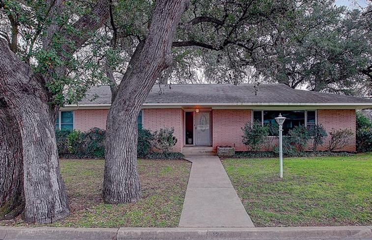 HUGE Live Oaks surround this mid-century modern home built of cypress/brick on pier and beam, circa 1962. Travertine tile, sliding glass doors open to huge patio, fully fenced. Zoned commercial or residential