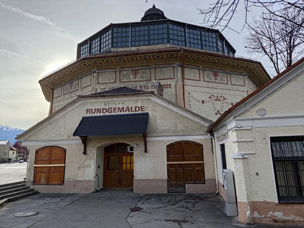 In Innsbruck, Austria, the Tirol panorama painting of the 1809 Begisel battle was separated from its original rotunda in 2010 (under protest from IPC and preservationists). The Tirol panorama reopened in its new location on Bergisel Hill overlooking the city in 2011. Although proposals for the reuse of the rotunda were collected at that time, progress stalled and the rotunda remained empty for a decade. University of Edinburgh in 2004 contains an essay in which Wurmfeld describes the inspiration for his first abstract panorama: a visit to the Panorama Mesdag in The Hague.