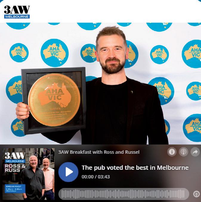 The feature material in this edition of Hotel Today was published by the Australian Hotels Association (Victoria). Care has been taken with the advertorial content of this issue; any enquiries regarding claims made should be directed to the companies concerned. The statements contained in this publication, while based on information believed to be accurate and reliable, are not guaranteed. No liability can be accepted for any error or omission.