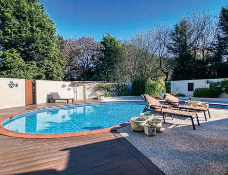 The property’s outdoor amenities are equally impressive. A triple car garage and freestanding 7m x 12m shed, with bathroom, offer ample space for a classic car collection or potential for a multi-generational living area. The secure gates and circular paved driveway, bordered by established gardens and expansive lawns, create an inviting and secure entrance.