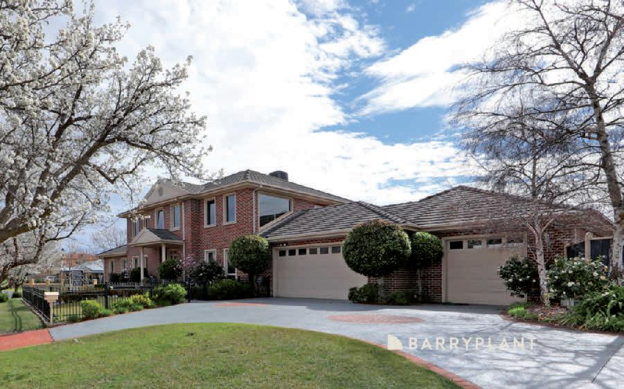 Encircled by exquisitely landscaped gardens, this distinguished residence delivers elegance and grandeur at every turn. Thoughtfully designed across two expansive levels, the home opens with a ground-floor master suite featuring a walk-in robe and a beautifully updated ensuite with dual vanity. The living domains are nothing short of impressive, highlighted by a soaring-ceiling lounge with a statement fireplace, a light-filled family area, and a versatile rumpus room.