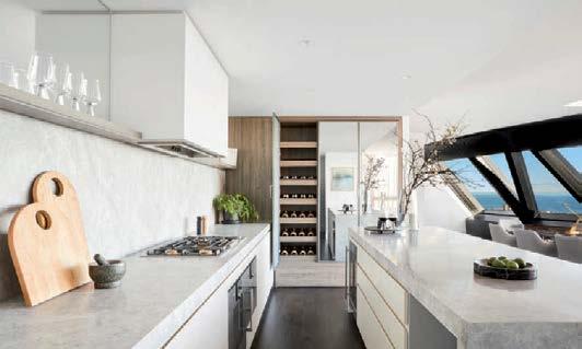 Set on 322sqm approx., the interiors exude sophistication with soaring ceilings, curved glass, wide oak floors, and natural stone finishes. Sunlight floods the expansive living domain, centred around a private north-facing courtyard, while a semicircular atrium and feature bar create a striking entertaining zone.