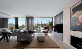 Beyond an established garden forecourt, soaring ceilings and fluid living zones unfold, each drawing light and greenery through tinted glazing. A tranquil lounge opens to a private courtyard, while the central kitchen pairs stone finishes with Miele appliances and generous preparation space. Open-plan living and dining extend to a Mediterranean-inspired al fresco with built-in BBQ, connected by automated sliding doors.
