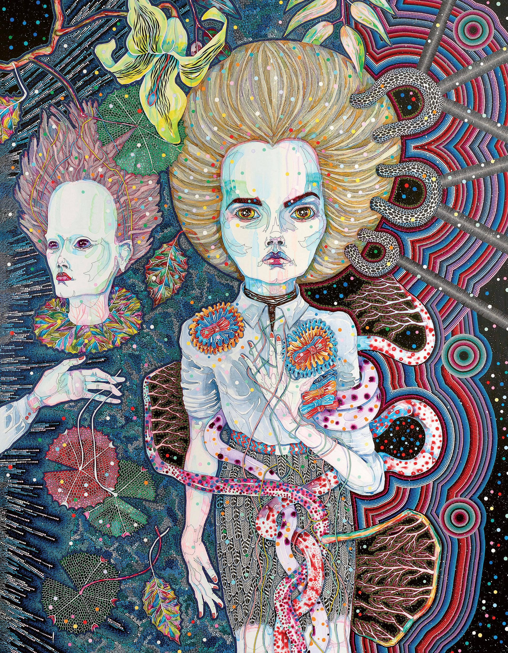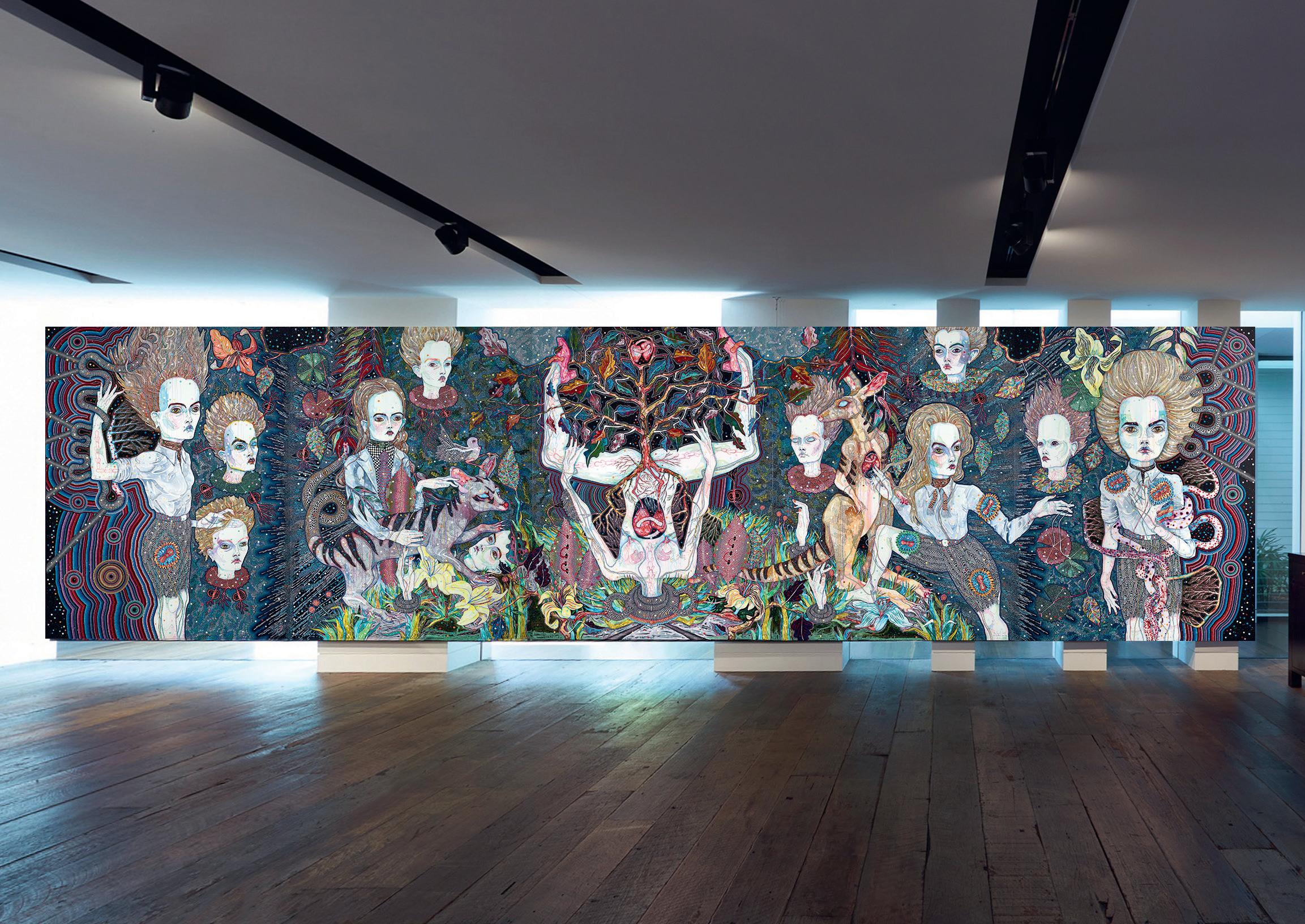 The painting was created over two years as a special commission for the Adelaide Biennial in 2014, then shown at Melbourne Art Fair later that year, where it promptly sold. It featured prominently in Know My Name (2020), a publicationsand-exhibitions initiative championing Australia’s living female artists, of which Del Kathryn Barton is a true pioneer.