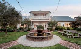 At its heart, a Tuscan-inspired residence curated with the late Stuart Rattle features four bedrooms over two levels, elegant interiors in granite and sisal, and a grand sitting room with a 2m stone fireplace. The gourmet kitchen includes Belgian slate benchtops, Miele appliances and a La Canche oven, opening to a flower room and herb garden.