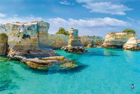 The historic port town of Bari is the capital of the Puglia region, and its ‘old town’ and promenade are captivating. The spectacular clifftop town of Polignano a Mare is known for its golden buildings, white pebble beach and vibrant green waters, while the Baroque city of Lecce, known as the Florence of the South, has a beautiful city centre with many old churches and vibrant piazzas.