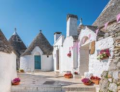 Head inland to the Itria Valley and the World Heritage Listed town of Alberobello where you can see examples of eighteenth-century Trulli, which are the region’s traditional limestone huts. Back on the coast, the town of Salento is said to have Italy’s most pristine coastline and crystal-clear seas. Known as ‘the white town’ Ostuni will delight with its narrow streets, traditional craft shops, beautiful beaches, and nature reserves.