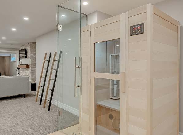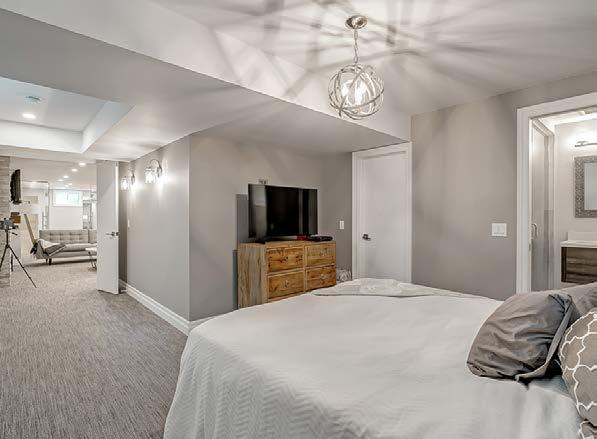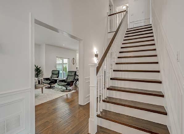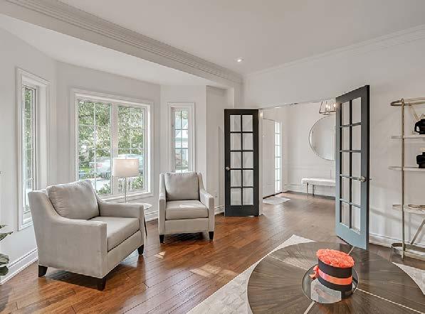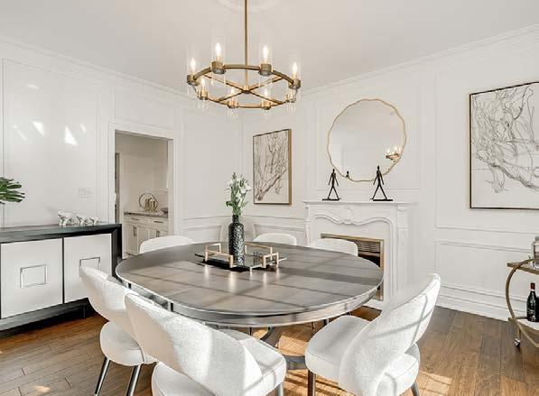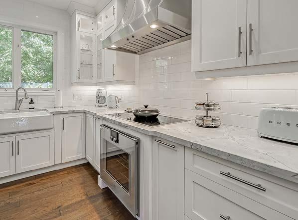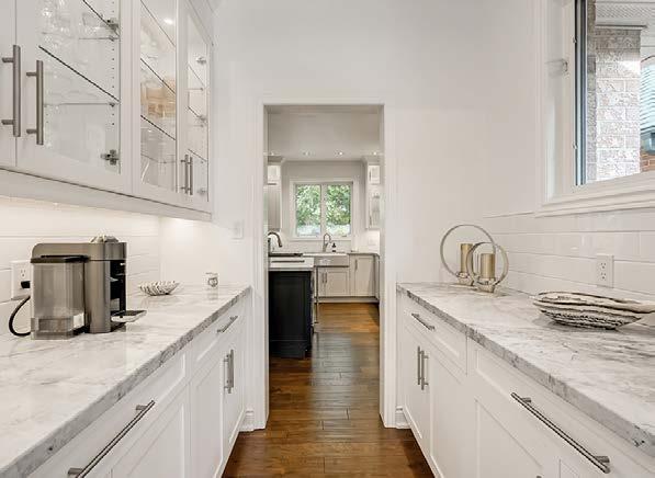 The gourmet chef’s kitchen is a masterpiece complete with a centre island, walk-in pantry, and topof-the-line appliances. It connects through the butler’s cove to the formal dining room providing an inviting setting with French doors and elegant electric fireplace.