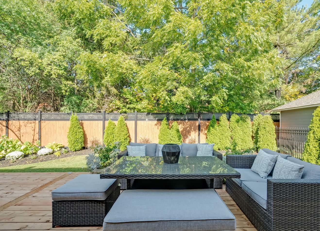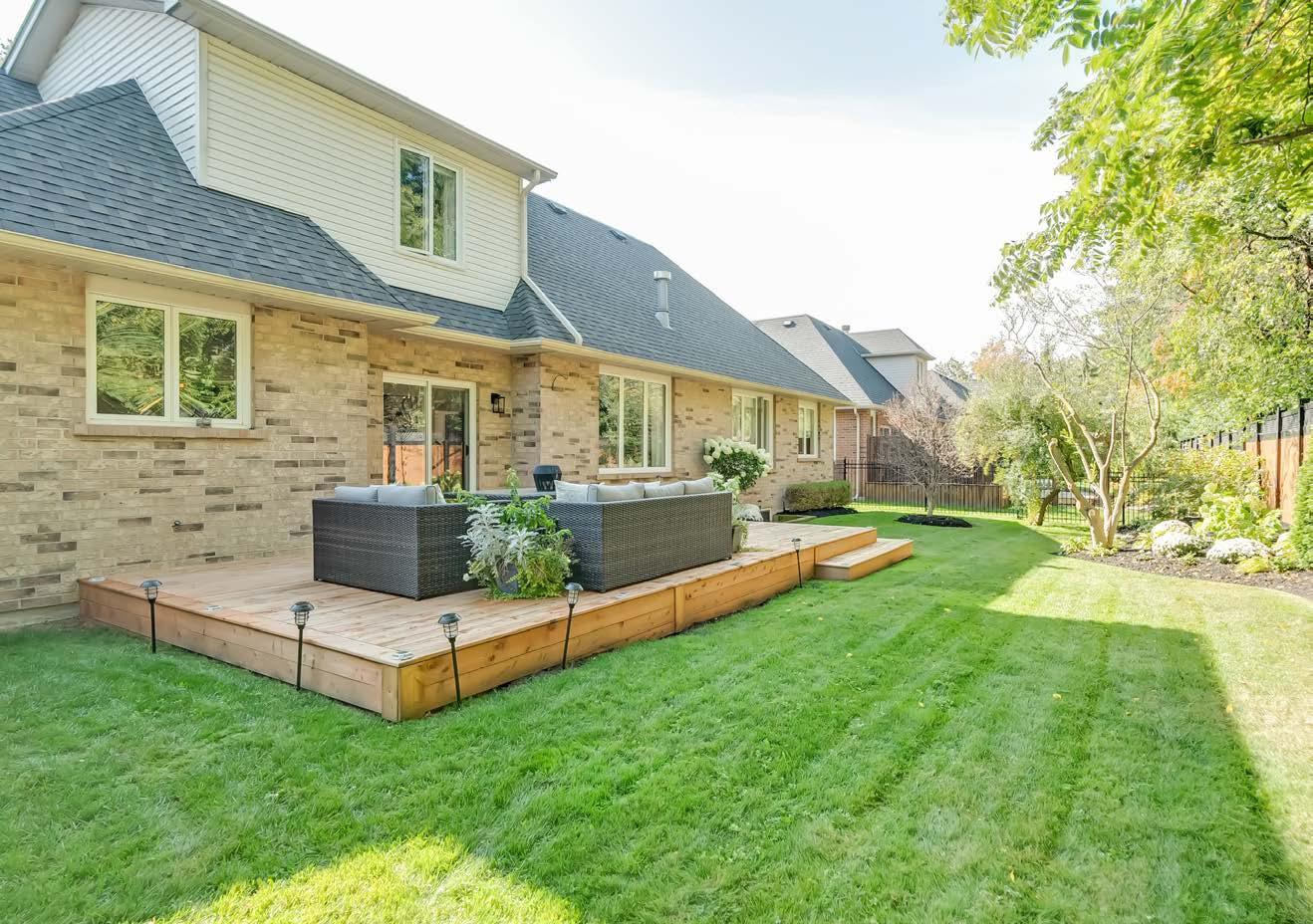 Step outside to discover a beautifully landscaped oasis with an interlock driveway, irrigation system, and private ravine views.