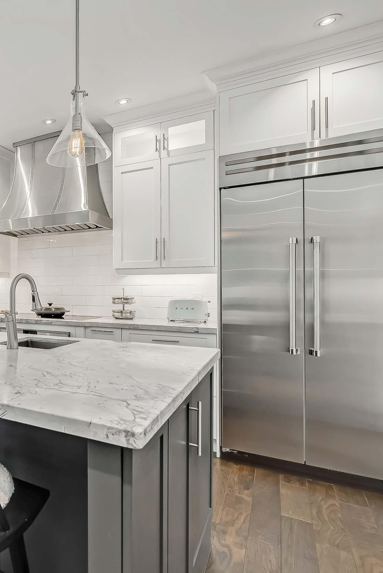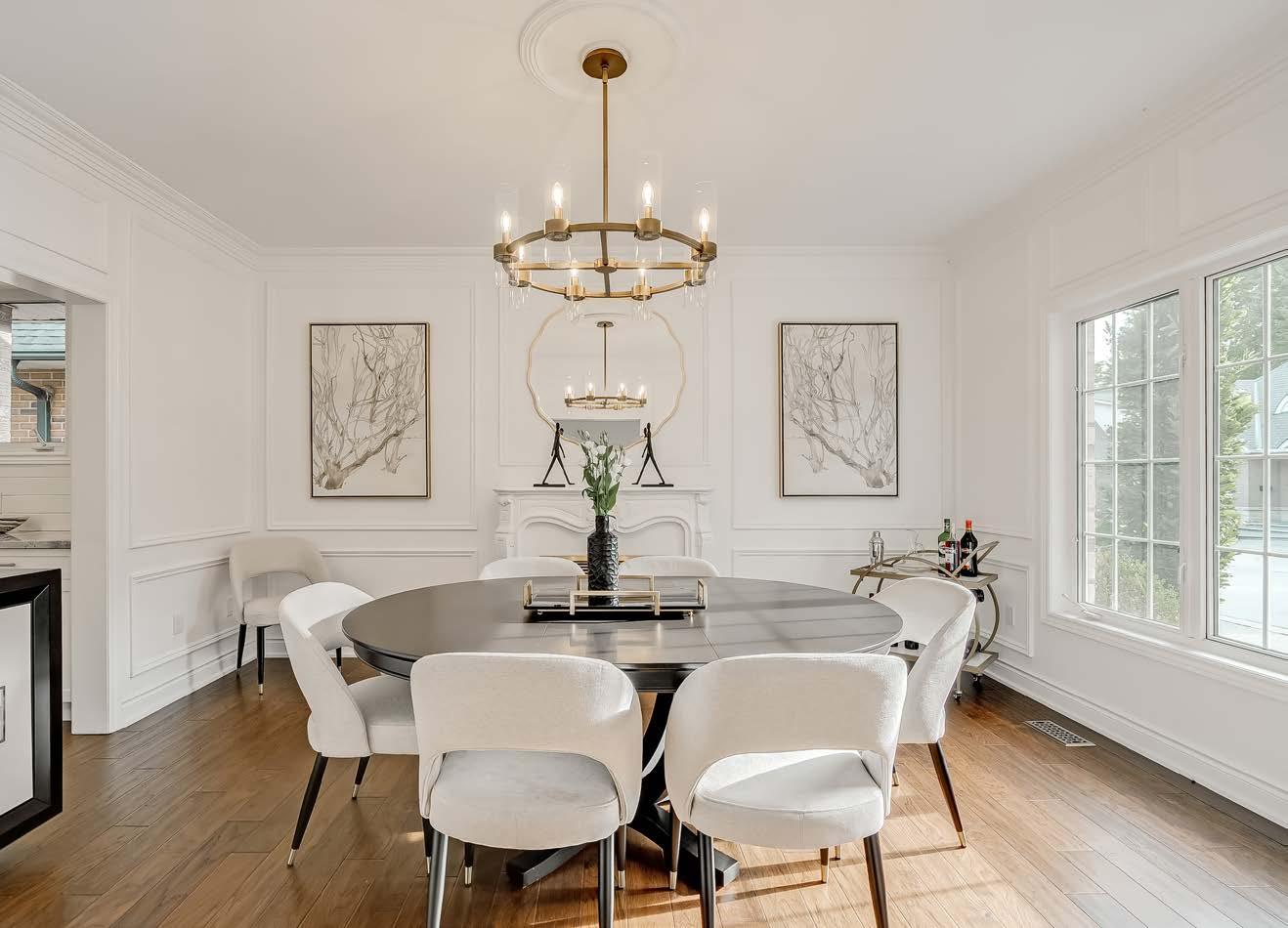The top two floors have been renovated with wide plank hand-scraped hardwood floors. The gourmet chef’s kitchen is a masterpiece complete with a centre island, walk-in pantry, and top-of-the-line appliances. It connects through the butler’s cove to the formal dining room providing an inviting setting with French doors and elegant electric fireplace. Convenience is paramount, with main floor laundry and direct access to a double car garage.