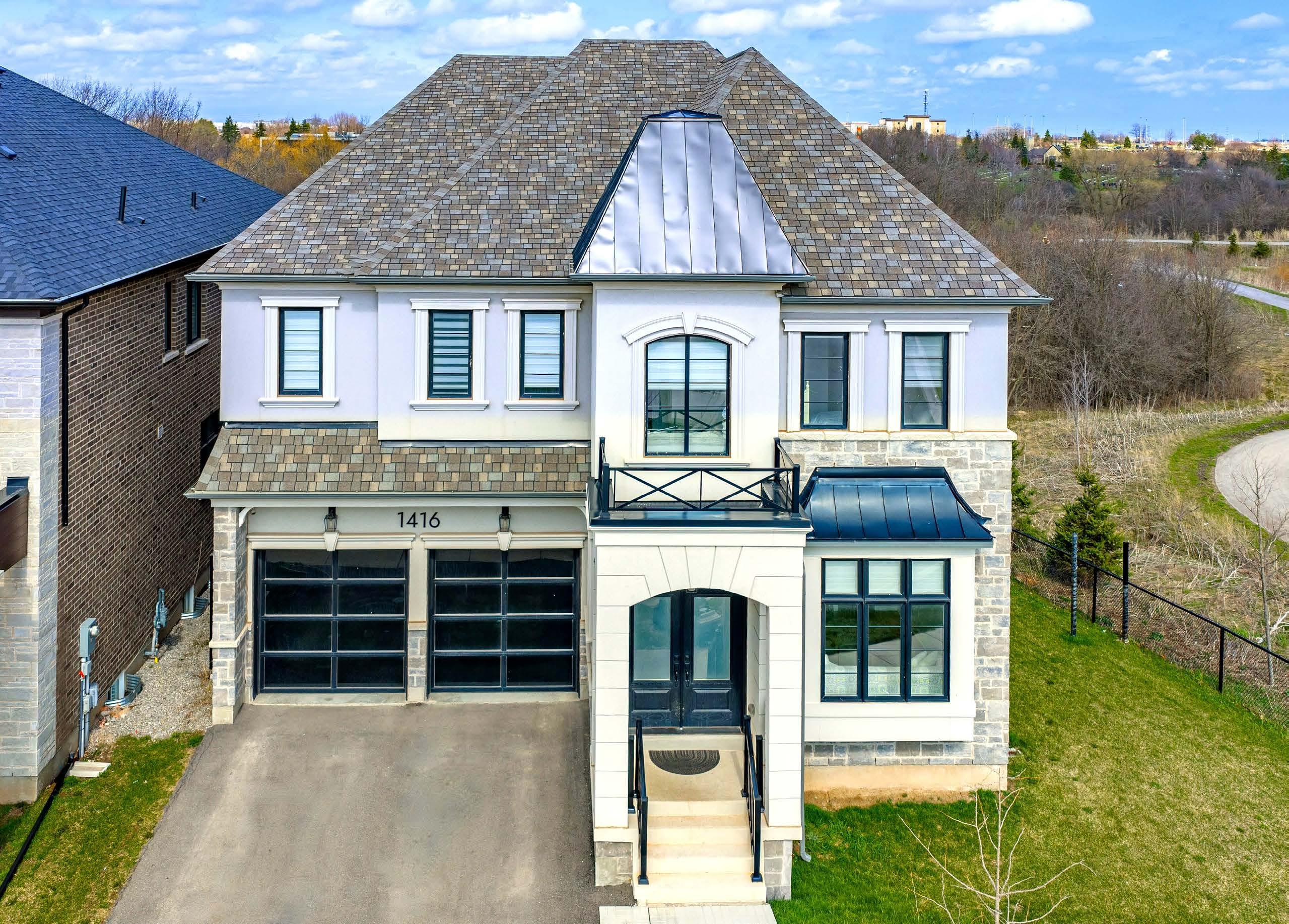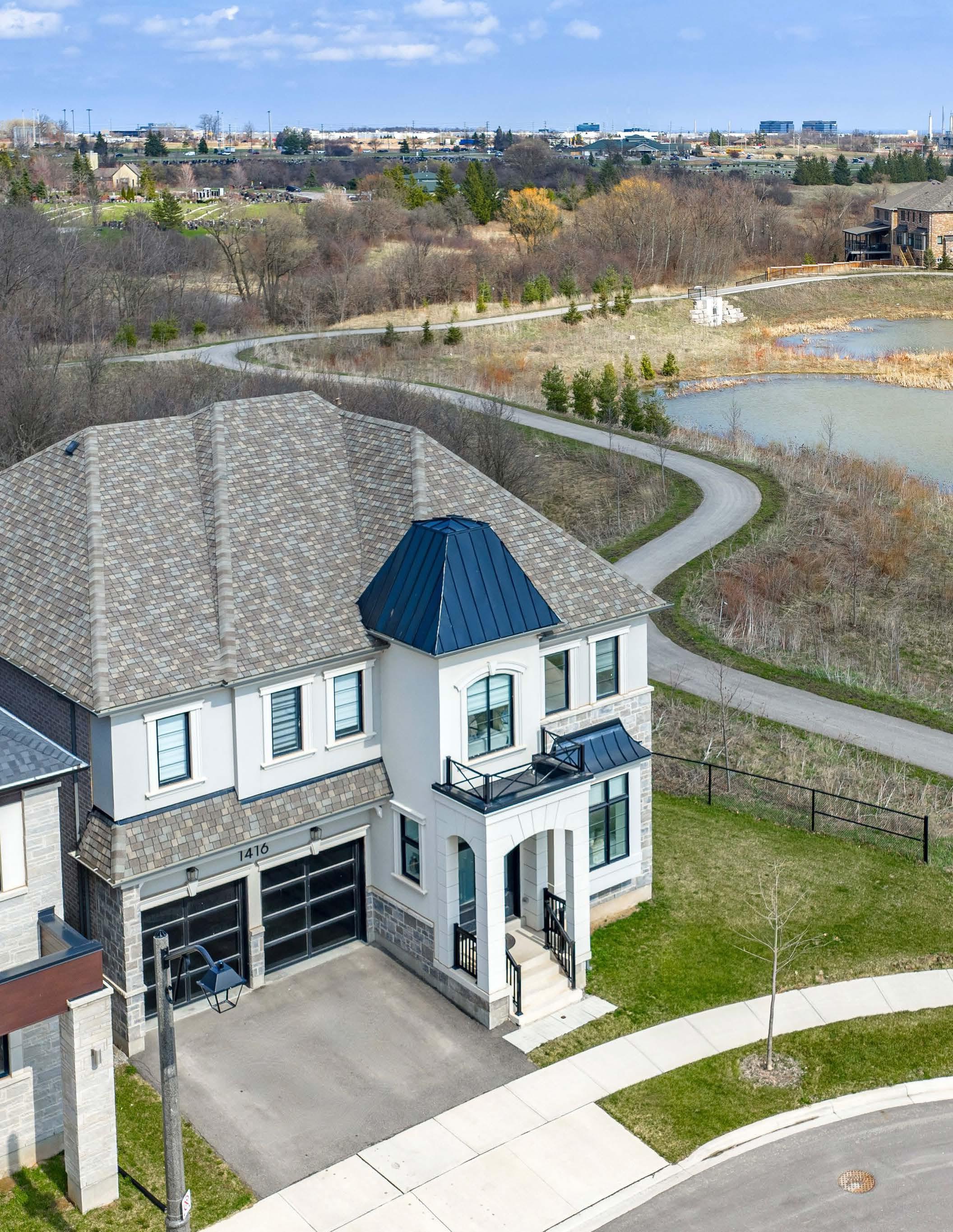Offering over 3,700 sq. ft. of beautifully designed living space, this exceptional Mattamy-built residence features 10’ ceilings on the main floor and 9’ ceilings on the second level and the walk-out basement, creating an open, airy feel throughout. Designed with modern family living in mind, the open-concept layout showcases a spectacular chef’s kitchen complete with high-end appliances, including a Sub-Zero fridge and Wolf range. The oversized island serves as the perfect gathering place, while expansive windows flood the space with natural light and seamlessly connect the kitchen to the inviting family room with an elegant gas fireplace. A separate dining room with a convenient servery is ideal for formal entertaining, while a private main-floor office offers the perfect work-fromhome setup. The thoughtfully designed mudroom with custom built-ins adds everyday functionality. Upstairs, the luxurious primary suite features elegant tray ceilings, dual custom walk-in closets, and a spa inspired ensuite with a glass-enclosed shower and freestanding tub overlooking tranquil green space. Three additional generously sized bedrooms, each with ensuite access and most with custom closets, provide comfort and privacy for the whole family. Plus and extra large media room that could be turned into a 5th bedroom. The second floor laundry room is bright and spacious. The walk-out basement with oversized windows offers endless potential for additional living space. Set on an impressive fully fenced 60 x 152 ft lot, this home enjoys true privacy and rare pond and ravine views, with direct access to trails and nature. Relax or entertain on the main-level deck while taking in the serene surroundings. Scan code below for property video!