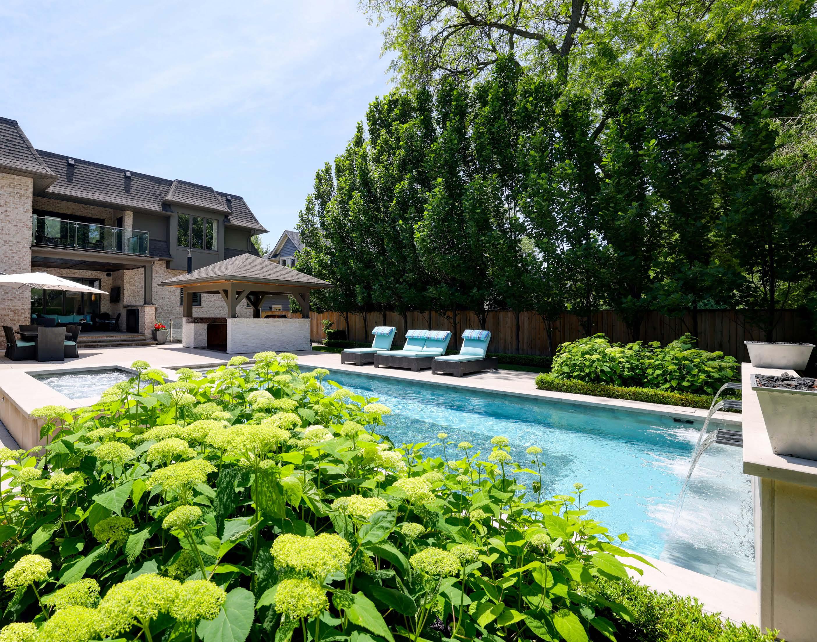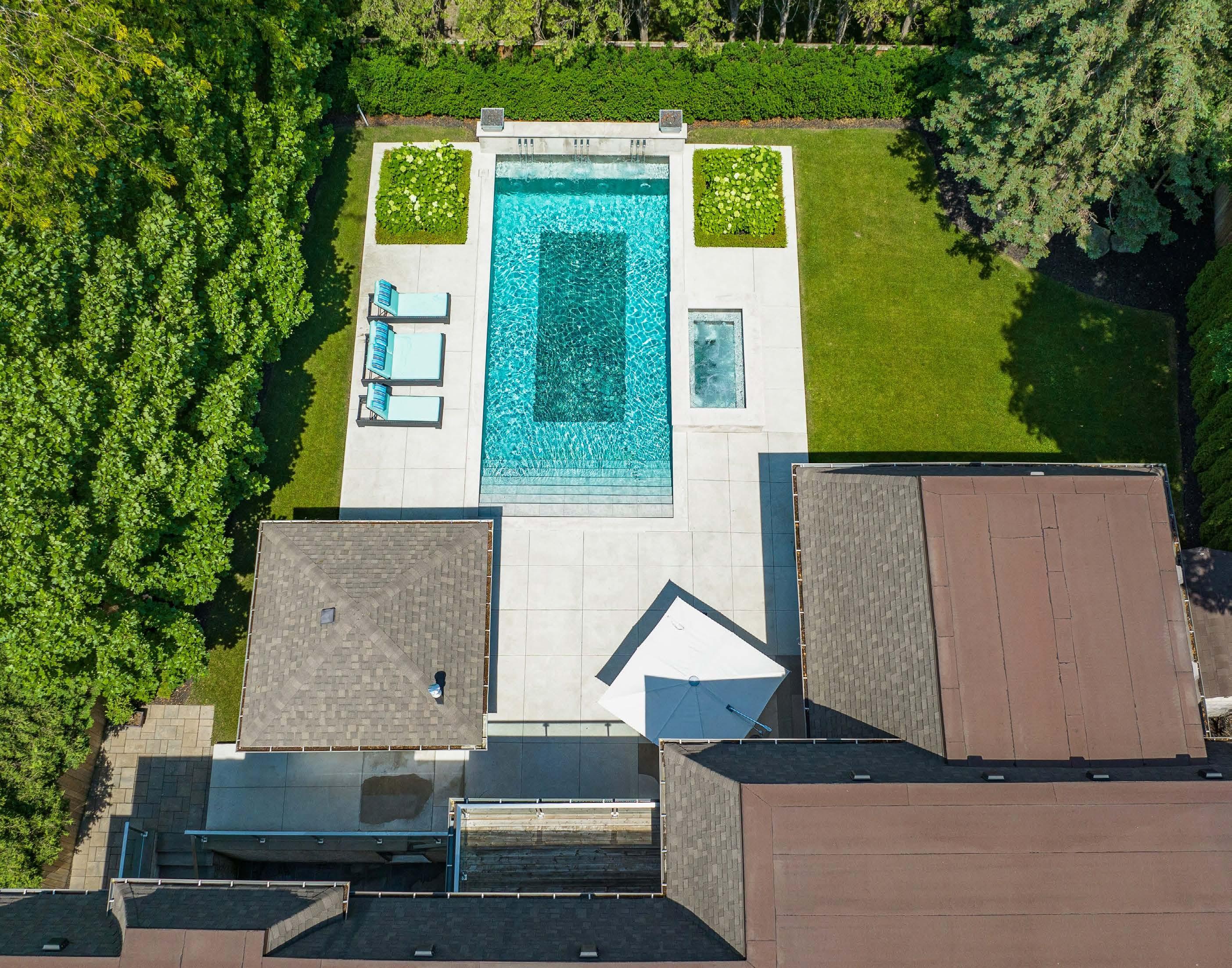• Completely hardscaped with Indiana Limestone caps on all walls and around pool and Jacuzzi