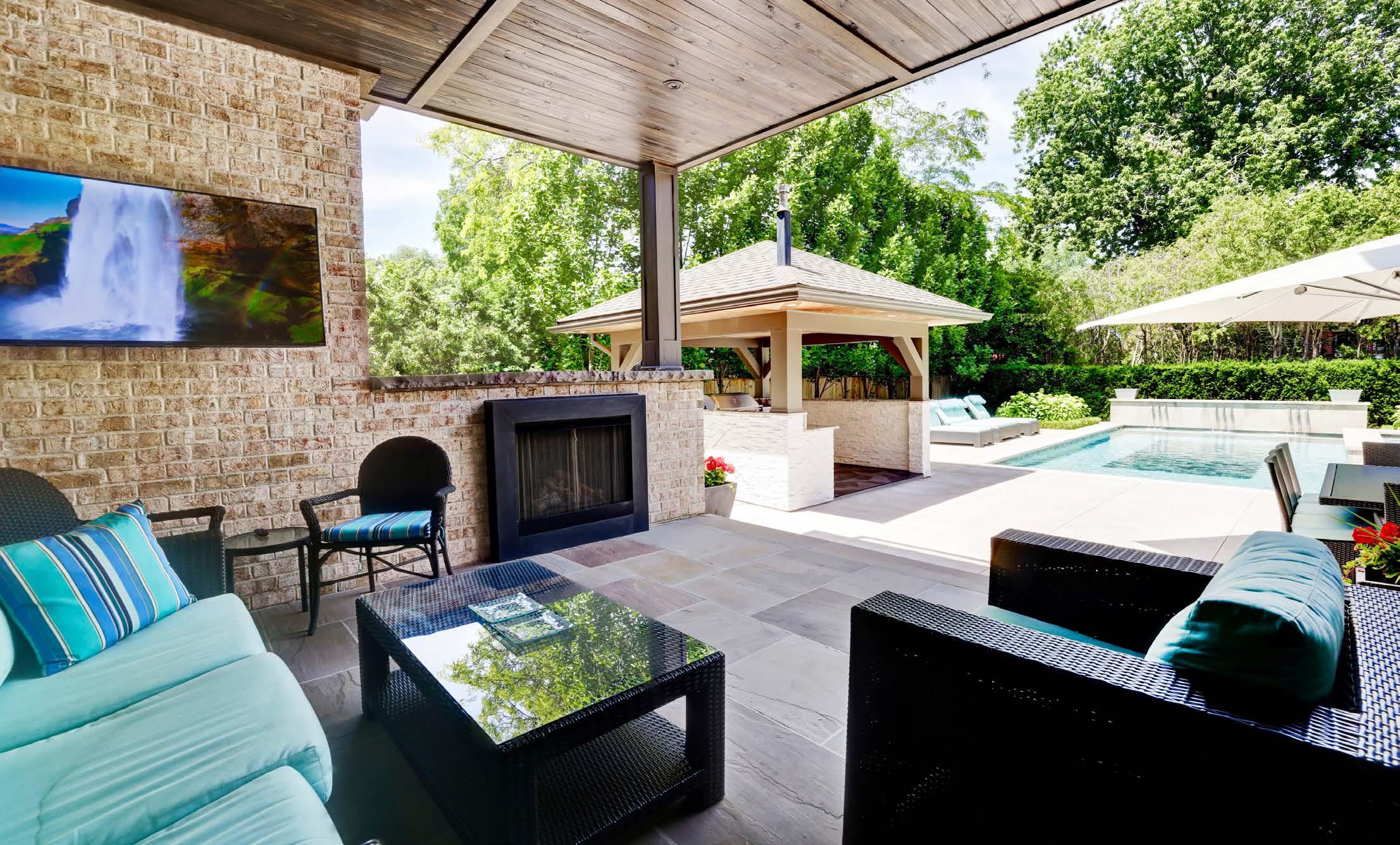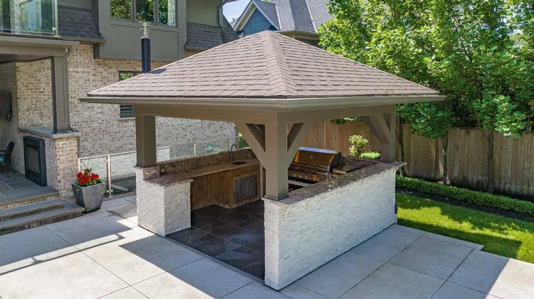 • A Marvel Refrigerator and Astoria stainless steel sink complete the outdoor kitchen